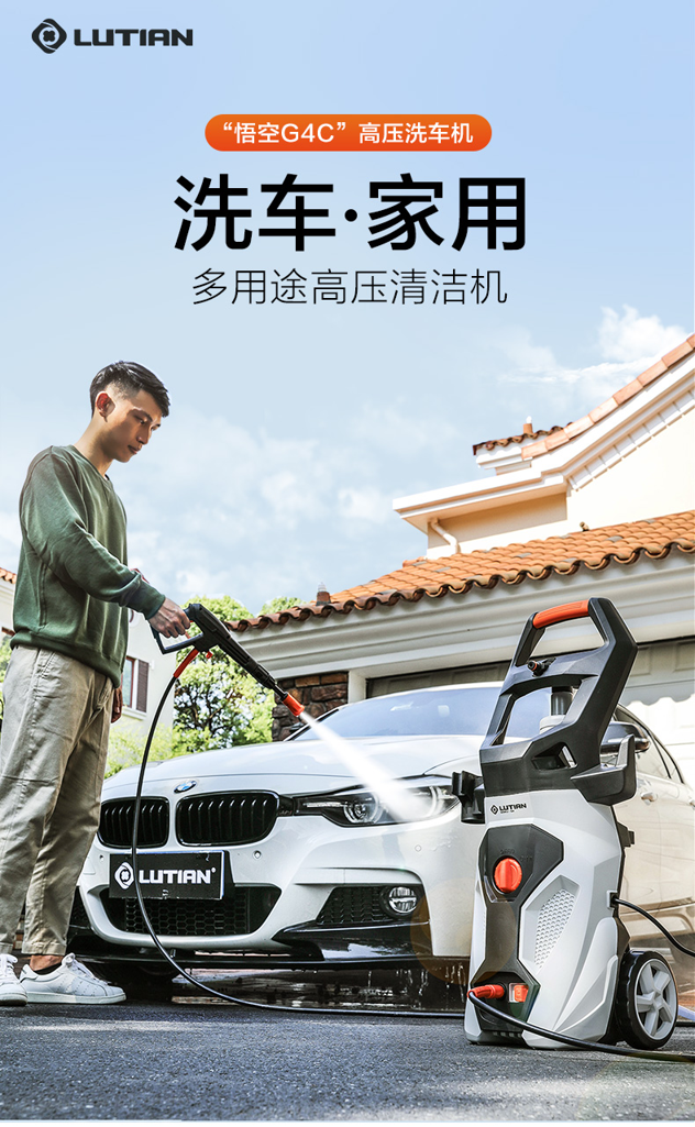 升级版8系能效电机,12片金属风叶,20000转/分钟,功率1400W,电机效率高达65%,能够迸发出100bar压力,可以连接水龙头,也可以自吸式水桶使用,一台机器具有清洗车辆、园艺灌溉、清洗户外及庭院等多种功能。