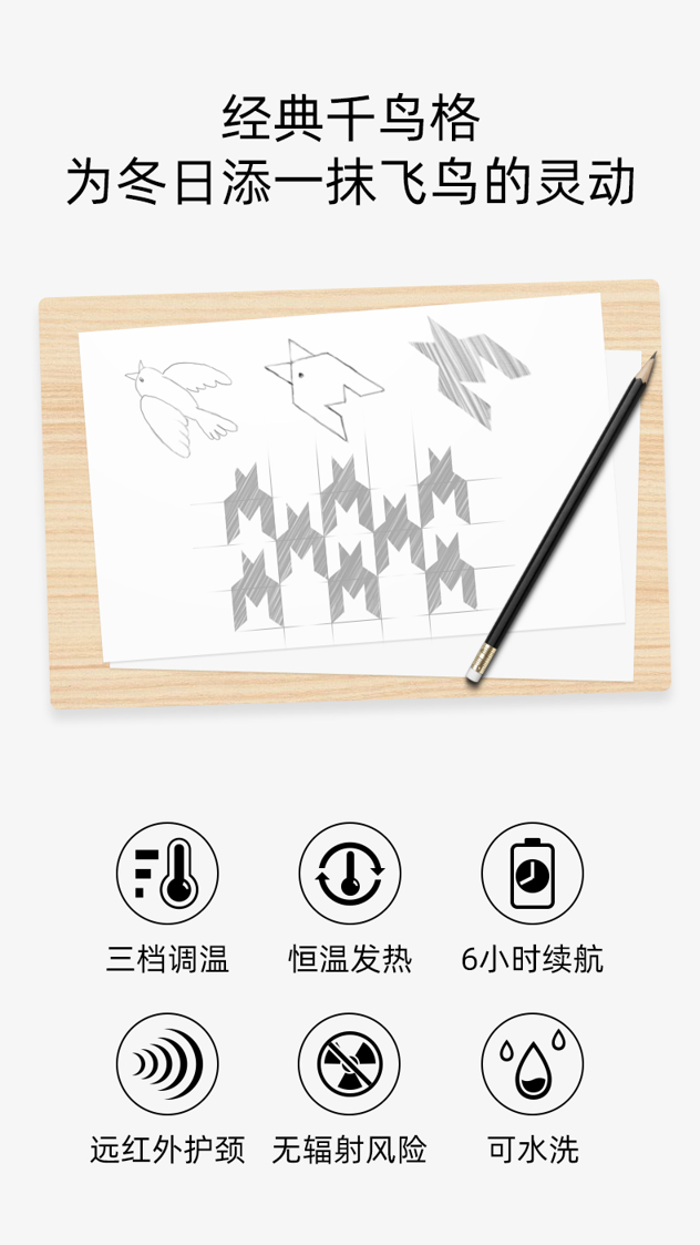 从颜值上来讲,也是目前为止最符合我审美的围巾,简洁不邋遢,短小精悍!电加热可水洗,符合我们追求方便的上班族习惯(就是懒)!内里填充杜邦棉,蓄热性能卓越,回弹性好,立体感强,恰到好处的环抱式设计,保暖周密。