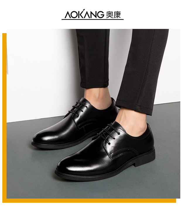 这款奥康男士皮鞋,鞋面采用头层牛皮材质,内里采用头层猪皮猪皮,真皮质柔软细腻,光泽鲜亮,且透气性好,久穿不易臭脚。
