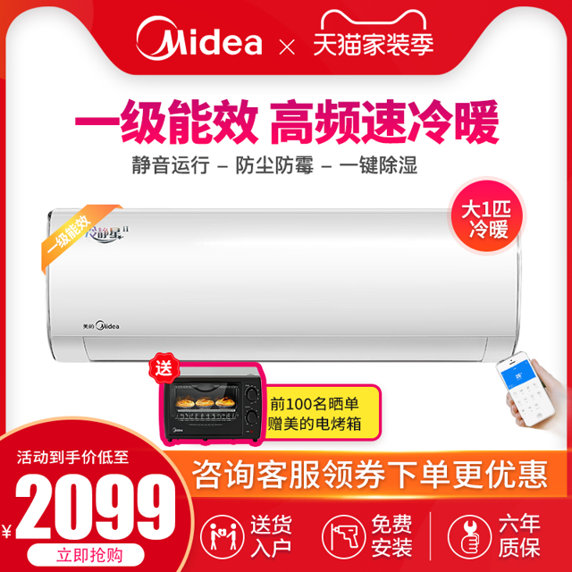 天猫美的万翼专卖店目前售价2599元,下单立减500,优惠卷100,入手1999元,感兴趣的买买不容错过~