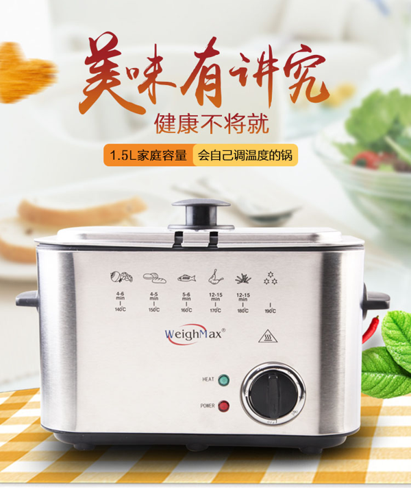 天猫weighmax旗舰店99元,可领25元优惠券,实付74元到手,直降15元,新低价。Weighmax家用无油烟电炸锅,经过美国FDA厨具食品级认证、德国LFGB厨具食品级认证。1.5L家庭容量,1200w高速加热,升温迅速,最高温度190度,低于食物油烟点,无油烟油炸更健康。