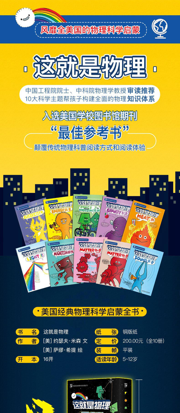 =79元 到手价,共10册,适合5-12岁的小朋友,《这就是物理》是美国经典的科学启蒙类丛书,中国工程院院士、中科院物理教授、央视2套《第一时间》也曾推荐过这套书。