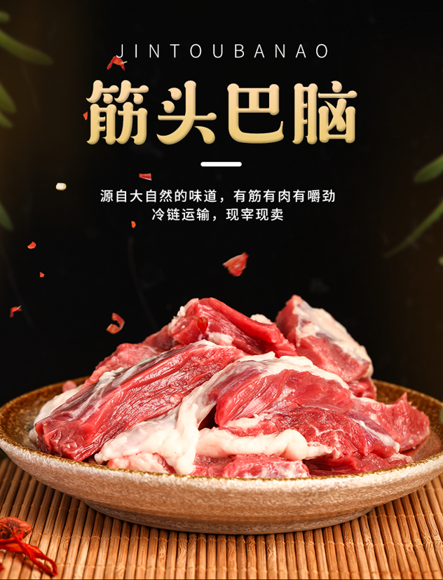 这款wecook 冷冻筋头巴脑牛肉,又叫贴骨肉,筋头巴脑为靠近牛肋部位的切割肉块,带有筋和油花。牛筋弹韧爽滑,嚼劲十足。肉块丰腴细腻,香嫩多汁,适合炖煮、红烧、烤串。牛还经过了72小时排酸,口感得到了极大的改善和提高,解冻后直接烹饪即可。