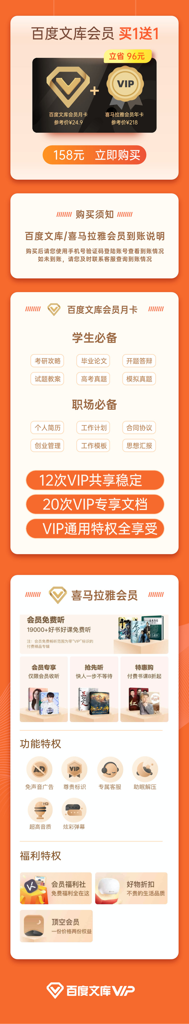• 喜马拉雅年费会员 12个月+百度文库 vip会员 月卡