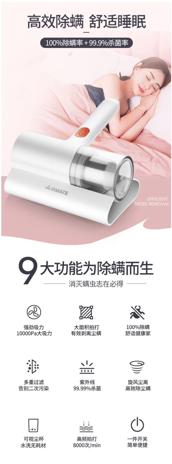 10000pa大吸力 99%除菌率 高效健康除螨。