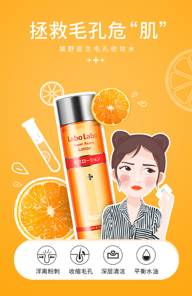 这款城野医生Dr.Ci:Labo 收缩毛孔 补水保湿爽肤水,日本原产,日本的人气产品,是其大热的爆款商品,专门针对20-30岁女性最为困扰的毛孔护理而研发的系列产品,超级火的一款收敛水,有清除黑头角栓+收缩毛孔+滋润补水三种功效,对毛孔粗大、皮肤粗糙的真的非常有效果。