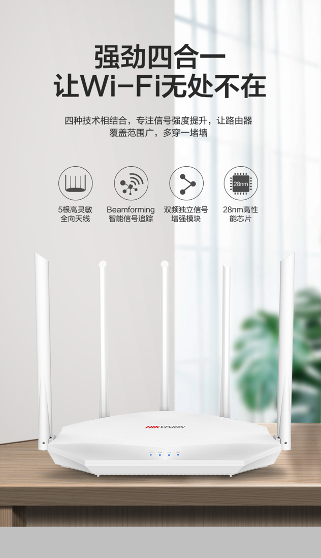 升级5根6dbi高灵敏全向天线,Beamforming智能信号追踪技术进一步提升穿墙能力,搭载MU-MIMO技术,2.4GHz、5GHz双频独立信号增强模块,具备1个千兆WAN口和3个千兆LAN口。