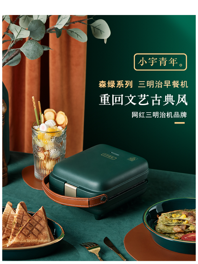600W大功率,一压即可,操作简单方便,早餐几分钟时间就好了,只需要准备好面包片,你想吃的各种食材即可,像香肠、培根什么的可以直接用它煎,先铺一片面包,放上想吃的鸡蛋,香肠,剩菜,芝士片,腌黄瓜,小龙虾,培根等等等等。