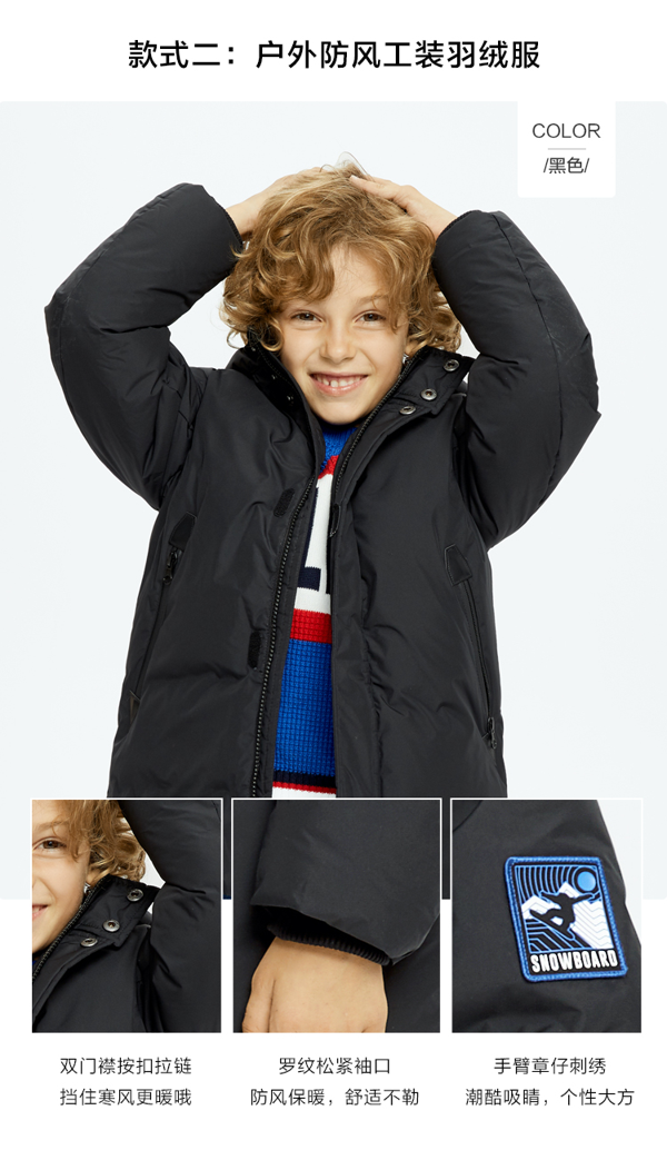 这款The Children's Place 男童中大童连帽加厚羽绒服,轻微防水面料,防风保暖无压力,含绒量80%,蓬松度高,御寒保暖;松紧袖口,防止寒风入侵,斜插大口袋,方便置物;手臂安全反光条,贴心保护。