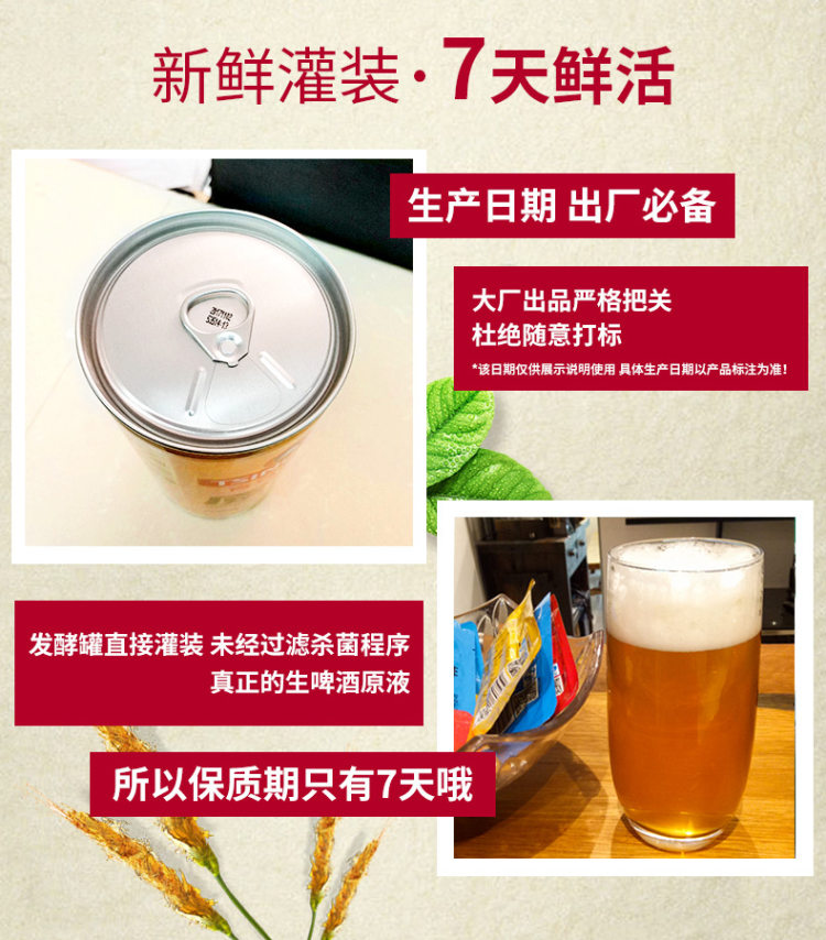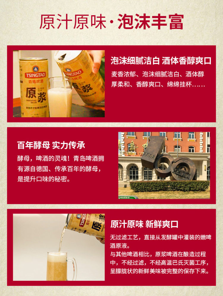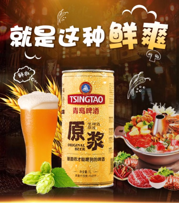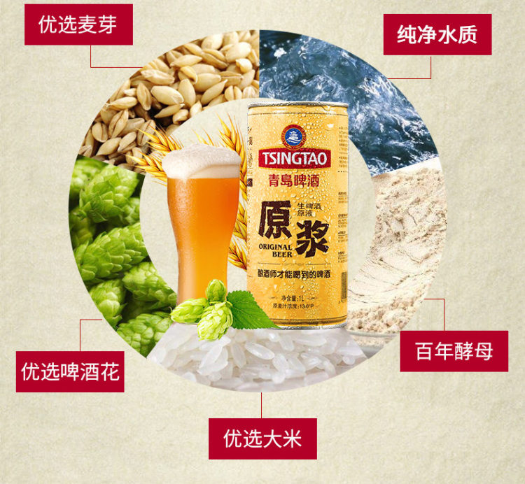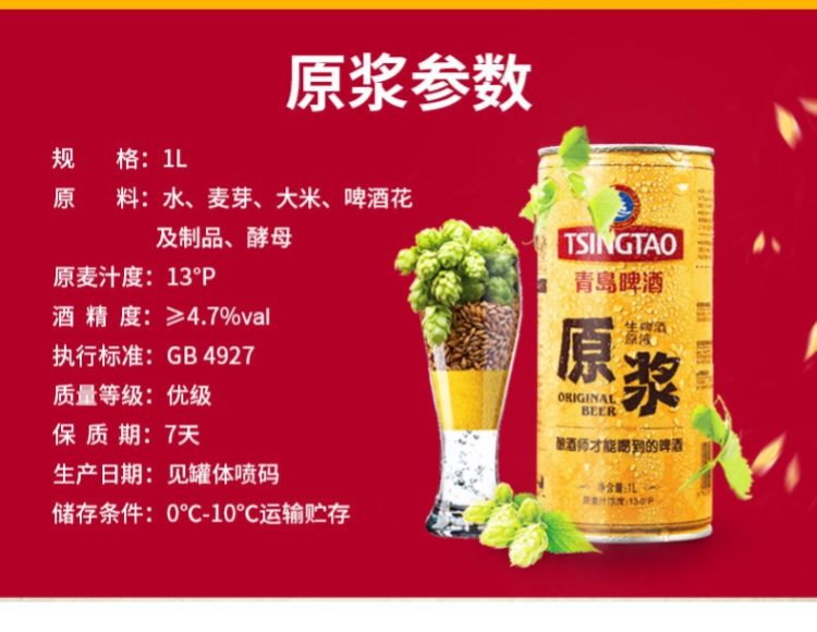 这款青岛啤酒 原浆啤酒,采用水、麦芽、大米、啤酒花和酵母等制作而成,不经过过滤工艺和高温巴氏灭菌,保留啤酒中最原始的浓郁麦香。容量:1L。保质期7天。