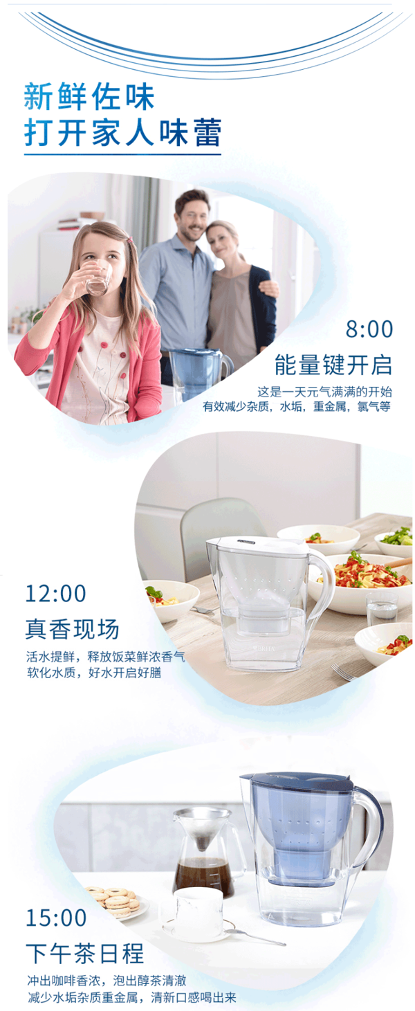 滤芯方面,德国原装进口的Maxtra+,比传统的一代滤芯在过滤能力方面增加了20%,还改良了MicroFlow Technology 微流控技术,使水的味道比以往更好。滤芯中所含的活性炭,能有效过滤水中的重金属、水碱、杀虫剂、有机杂质、氯气和异味。