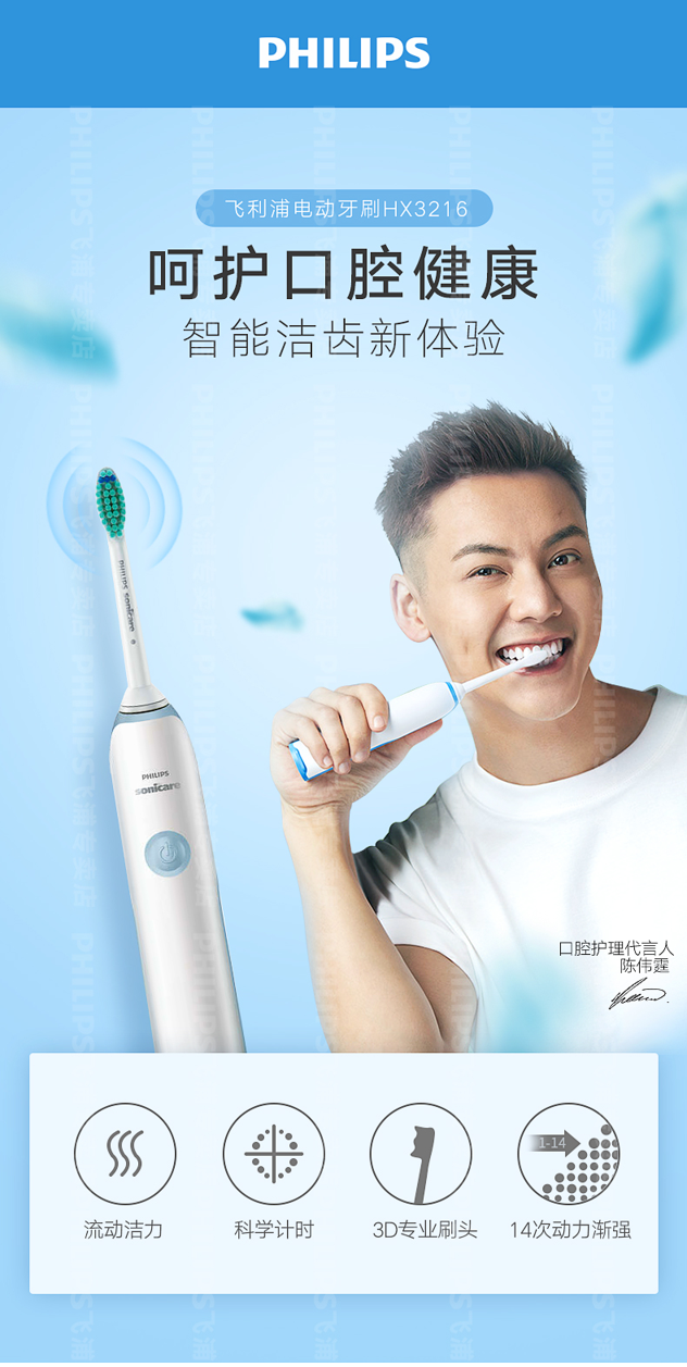 毛刷可以达到23000次/分钟强声波震动(6系是31000次/分),配合5.5mm宽摆幅,带动口腔中液体流动,形成流动洁力,可以深入牙间隙和牙龈线区域以及后臼齿区的口腔死角,清除难以触及区域的牙菌斑。采用美国进口3D磨圆刷头,呵护牙齿牙龈。人性化曲线刷柄,使用更方便。机身可直接冲洗;配备充电座,智能感应充电,充电24小时,可使用10天。
