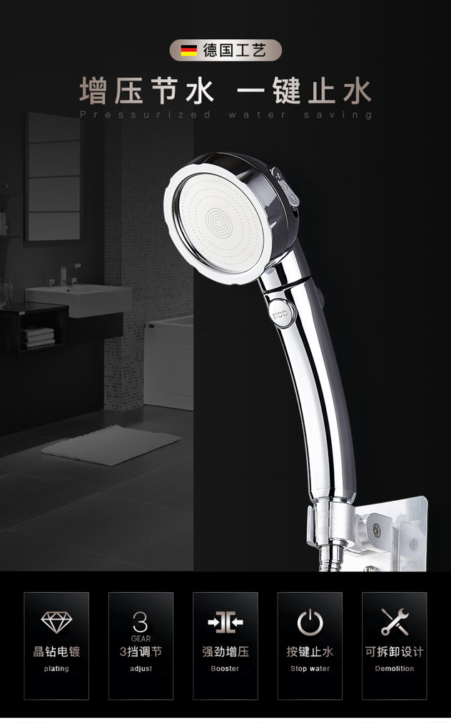 花洒有一二三档调节,