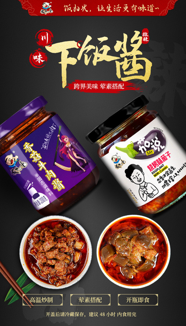 天猫福欣食品专营店29.8元,可领10元优惠券,实付19.8元到手,第二件0元,拍2件共到手4瓶,线下超市13.9元一瓶。有烧烤茄子小菜+香菇牛肉酱、竹笋牛肉酱 +香菇牛肉酱、香菇牛肉酱*2、酸菜鸡米酱+香菇牛肉酱 4种组合可选。