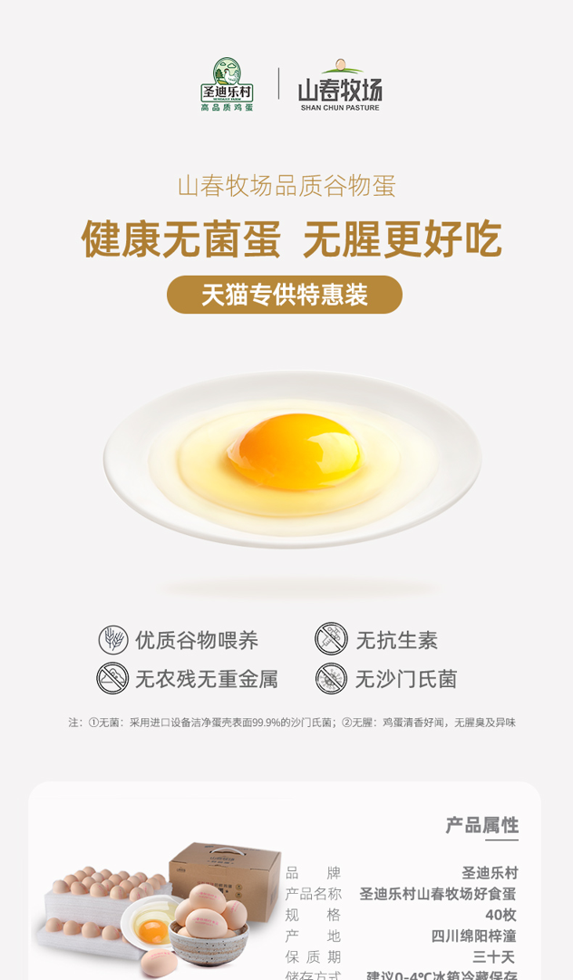 圣迪乐村是国宴峰会指定的蛋品供应商,采用德国罗曼种鸡,谷物喂养,每一个蛋品都可溯源,拒绝使用抗生素激素,同时引进MOBA设备,通过紫外线杀菌,至今未检出沙门氏菌,是放心安全的鲜鸡蛋,达到A级标准。