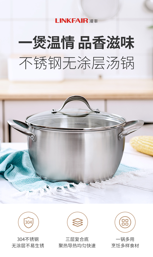 天猫linkfair凌丰旗舰店149元,可领80元优惠券,实付69元到手。第一款此价, 24cm/6.1L 。凌丰汤锅,采用304不锈钢材质,食品级,光滑易清洗,具有耐腐蚀、不易生锈等特点,钢铝钢三层复合锅底,迅速导热,燃气电磁灶通用。比这小号的汤锅也可炖下一整只三黄鸡,实用性高。