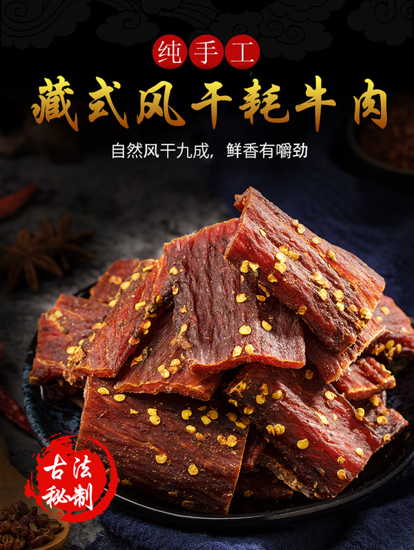 正宗牦牛肉干,来自四川阿坝大草原放养牛,生长在海拔3000米以上的雪域高原,空气洁净,没有任何污染,现代化设备灭菌,自然风干,藏式风味,肉质紧实,嚼劲十足!居家追剧,休闲良品领券链接点此