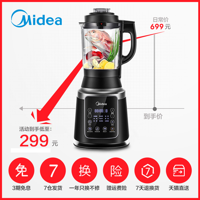 天猫美的精品电器旗舰店商品,现价699元,领699-400券及商品下方88VIP 500-50购物券,前500件收货返40元,到手实付最低209元,需要的买买关注~