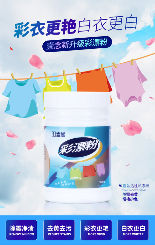 壹念彩漂粉!特别添加活性植物蛋白酶,快速渗透至衣服纤维深层,高效去黄去渍!让你天天穿“新衣”~棉麻、雪纺等多种面料均可适用领券链接点此