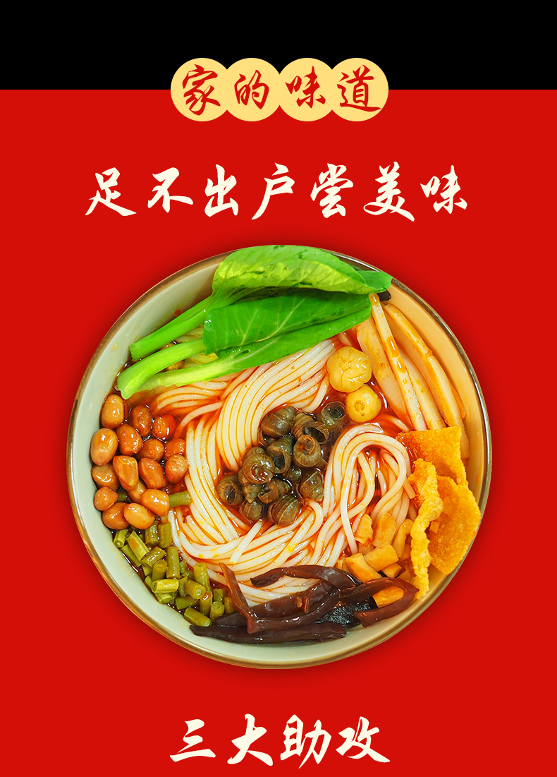 上次特价小编就下单了,总体还是非常满意的。分量上真的超足,小编胃口小分了2次吃完的,加了青菜等配菜,米粉煮了2次,非常软,很爽口,这家“臭味”不算大(当然也可能是分2次的原因),味道上合格,就是螺蛳粉的味道,配料好感度满分,特别多,腐竹和花生都香脆,辣椒油很香,不过不要一次性加太多,因为越吃越辣,辣到哭,总之这个价还是会回购的,希望不要涨价。