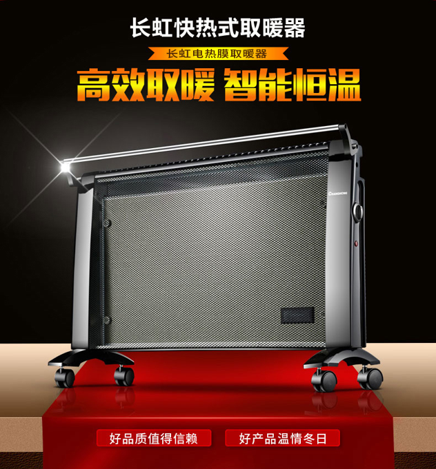 这款长虹电热膜取暖器使用优质硅晶电热膜,升温快,而且无光无味无噪音,与油汀相比,使用轻巧灵便,热效率高,内部有多条电热膜芯片,能够有效承载电流,迅速发热,开启后3秒速热。采用智能微电脑实现电子式控制,具有两档功率选择,最高能达到2000W功率,温度高,散热快。