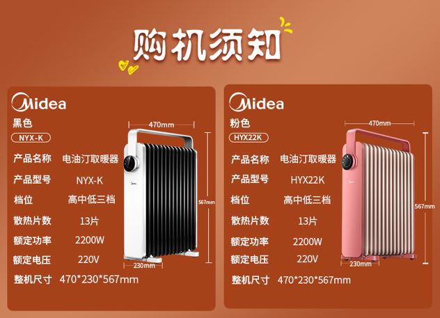这款美的电热油汀取暖器,166mm加宽油汀片,13片油汀同时升温,创新鱼骨油路速热设计,配合烟囱散热风道,散热面积更大,提高了热效率,制热速度更快,使用寿命更长。