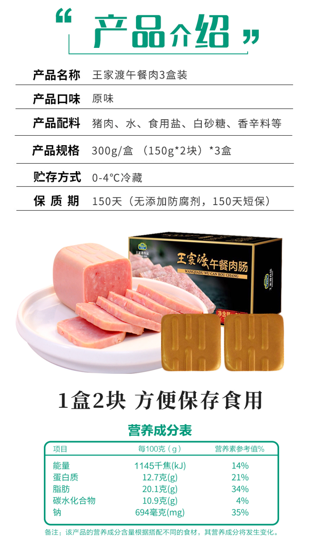 天猫王家渡旗舰店98元,可领30元优惠券,实付68元到手,精选优质猪肉为材料,不添加任何防腐剂,色素,淀粉,香精,没有混便宜鸡胸肉、淀粉,更具价值。肉质细嫩,口感Q弹,肉味十足;可搭配火锅,麻辣烫,或油煎,制作三明治;也可搭配米饭,面条等一起食用。规格为300g*3盒,每盒里有2块独立包装的午餐肉方。