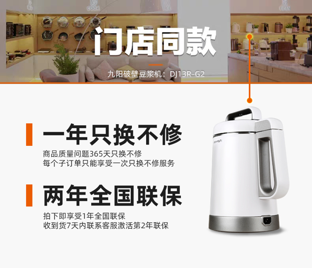 这款九阳 DJ13R-G2 豆浆机是2019年上市的最新款豆浆机,容量是1.3L,不仅可以打豆浆,还能做枸杞浆、紫薯浆、米糊、果仁露、果蔬汁等,功能齐全。