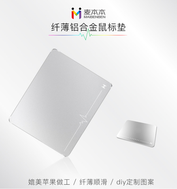 天猫qrtech数码旗舰店19.9元,可领2元优惠券,实付17.9元到手,麦本本铝合金鼠标垫,尺寸为22*18cm,厚度2mm,采用铝合金一体冲压成型,表面经过阳极氧化喷砂处理,手感顺滑。橡胶背面,拥有特制底纹,不易滑动。
