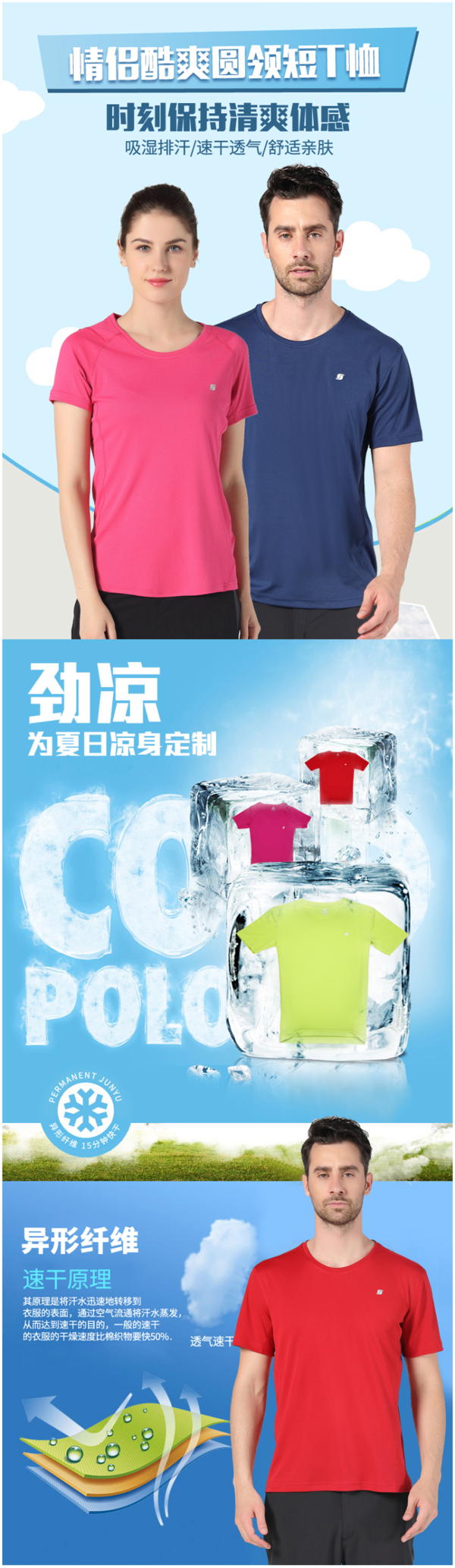 在面料方面,采用100%聚酯纤维的速干面料,由纱线一体织造而成,具有良好的弹性及吸湿速干透气性;接缝处是用四针六线工艺,能减少面料接缝处对肌肤的摩擦,大大增强上身的舒适度,非常舒爽丝滑;