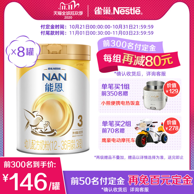 天猫精选目前页面预售价1621元,现支付定金100元,参加满1521-373元促销活动,1日付尾款到是1248元,合156元/罐,抢先付尾款,可赠好礼,近期好价,感兴趣的买买可以入手。
