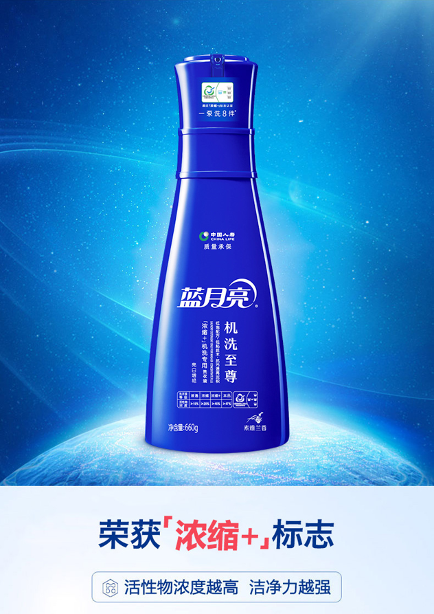 蓝月亮洗衣液是中国洗衣液市场的领导品牌,蝉联八届洗衣液冠军,2010年市场份额高达44%。2008年推出的深层洁净洗衣液引爆了中国洗衣液市场;2010年针对衣物色彩的护理推出亮白增艳洗衣液,2011年在中国抢先推出首款手洗专用洗衣液,掀起了衣物手洗新风尚。