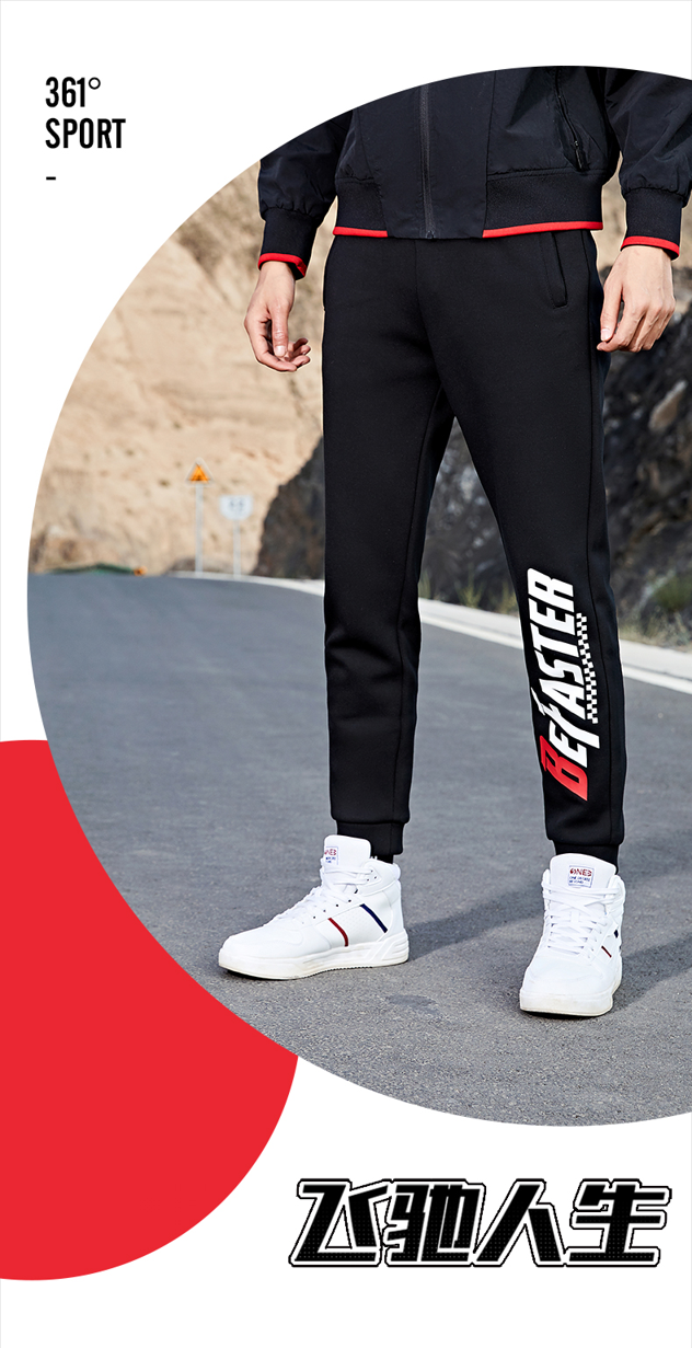 这款361度男针织运动裤,是2020年的秋季新款,使用59.4%棉+40.6%聚酯混纺的双面布面料,摸起来手感柔软,挺括有型不易褶皱,内里不加绒,适合春秋节穿。