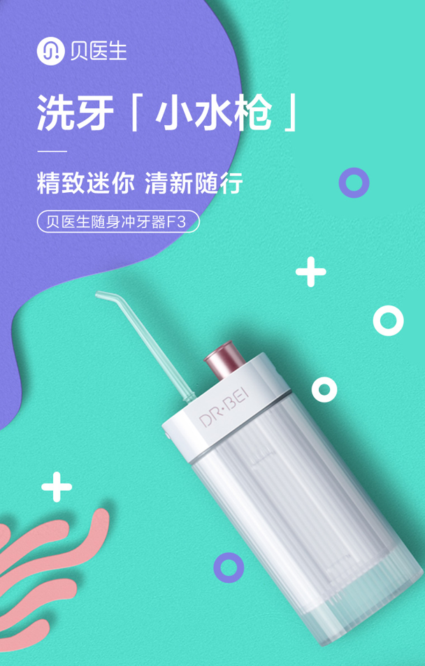 =164元 到手价(定金20+尾款144),贝医生 随身冲牙器 F3随身冲牙器,相对于传统冲牙器贝医生的外观大小更加小巧携带方便可以放口袋,高压脉冲水流,还能帮忙按摩牙龈,护理牙周,正畸人士也是可以使用,180ml大容量水箱。