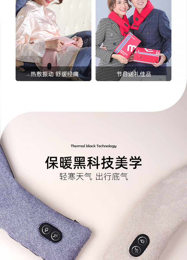 一键切换,3档温度可调,最高可达65度,可热水泡一个感受。从颜值上来讲,也是目前为止最符合我审美的围巾,简洁不邋遢,短小精悍!电加热可水洗,符合我们追求方便的上班族习惯(就是懒)!内里填充杜邦棉,蓄热性能卓越,回弹性好,立体感强,恰到好处的环抱式设计,保暖周密。