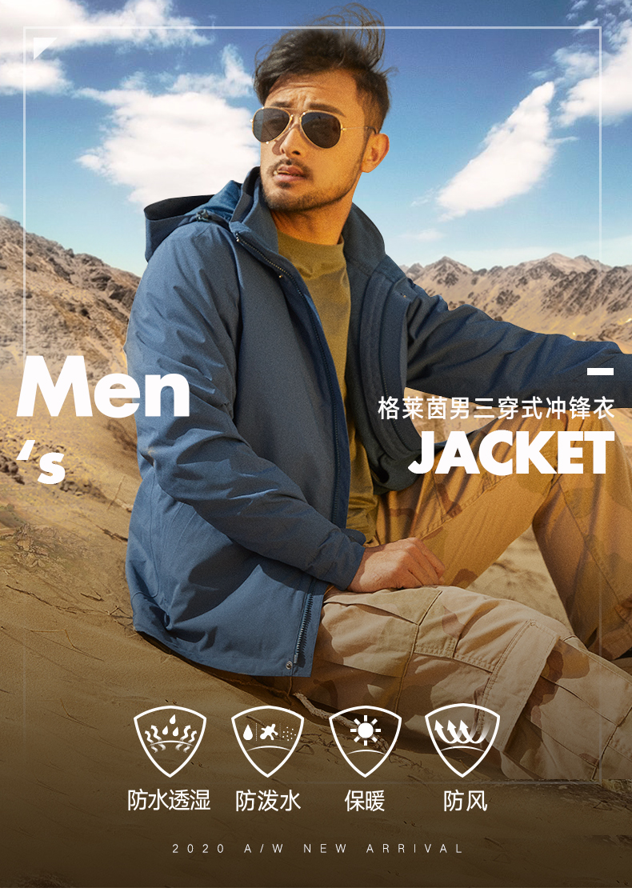 这款诺诗兰三合一冲锋衣采用防水透湿科技,采用全压胶技术,可达到暴雨级防水,透湿指数5000g+,内里采用pro100加绒内胆,保暖性能优异,且手感细腻不易起静电,穿着亲肤舒适。合体版型,基本不挑身材。衣帽和下摆可调节抽绳设计,防止冷风灌入,进一步提升保暖效果。内胆可拆卸单穿,整体简洁设计,休闲运动百搭穿着。