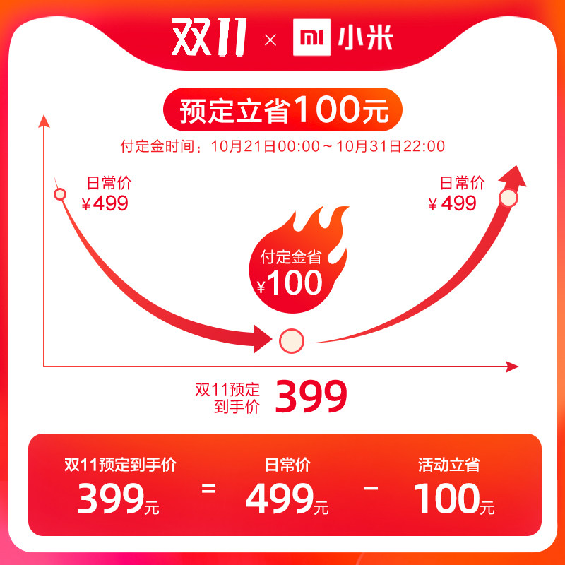 天猫小米官方旗舰店付定金预售,1日付尾款,预计到手价399元包邮,近期好价,感兴趣的买买可以关注。