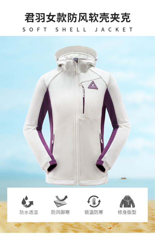 这件君羽软壳衣是2019年的秋冬新款,使用四向弹力的75D涤氨面料(90%聚酯+10%弹性),可达97%防风,同时可防小雨,底层是保暖摇粒绒,成衣透气耐磨还保暖,是最适合春秋季节穿的衣服。