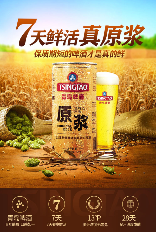 天猫圈链通食品专营店48元,可领20元优惠券,实付28元到手,青岛原浆啤酒,13°P麦汁浓度无勾兑,28天深度发酵,无过滤工艺和高温巴氏灭菌工序,直接从发酵罐中分装的嫩啤酒原液,保留了更多的鲜活酵母和营养成分,麦香浓郁、口感纯正,容量:1L大罐 7天鲜活保鲜,发当天或次天新产。
