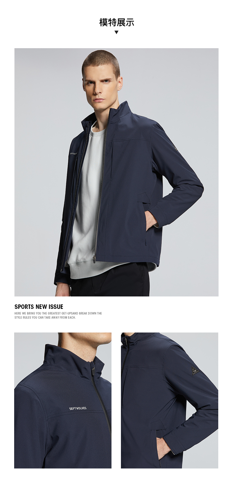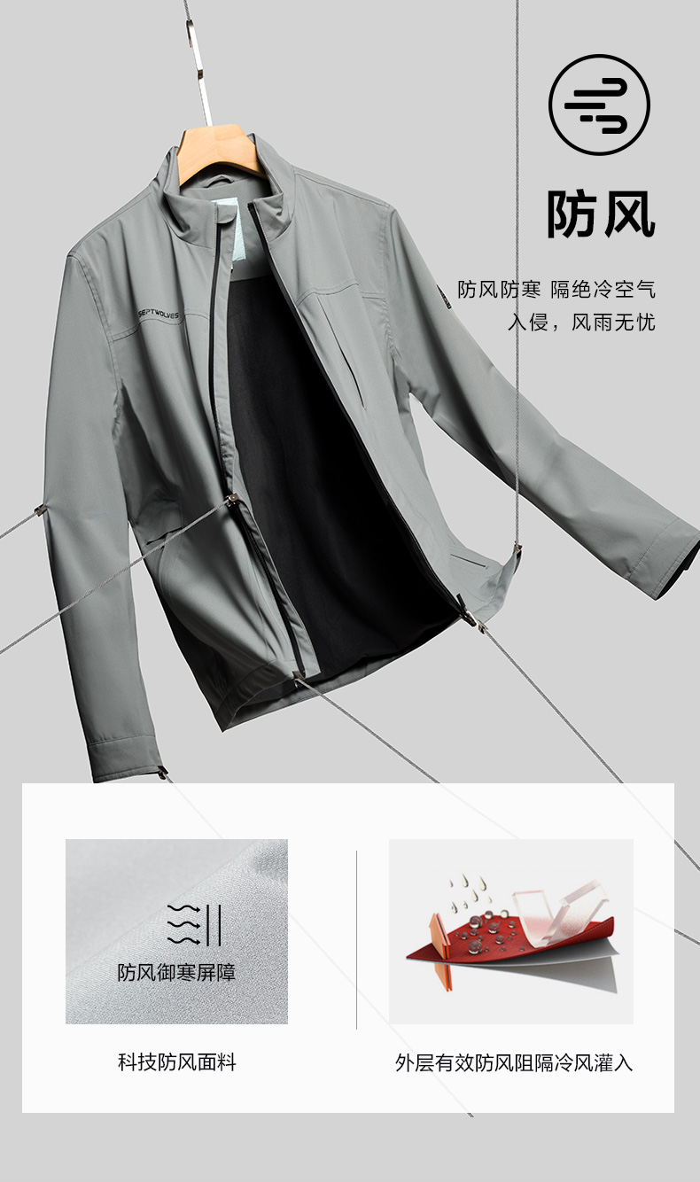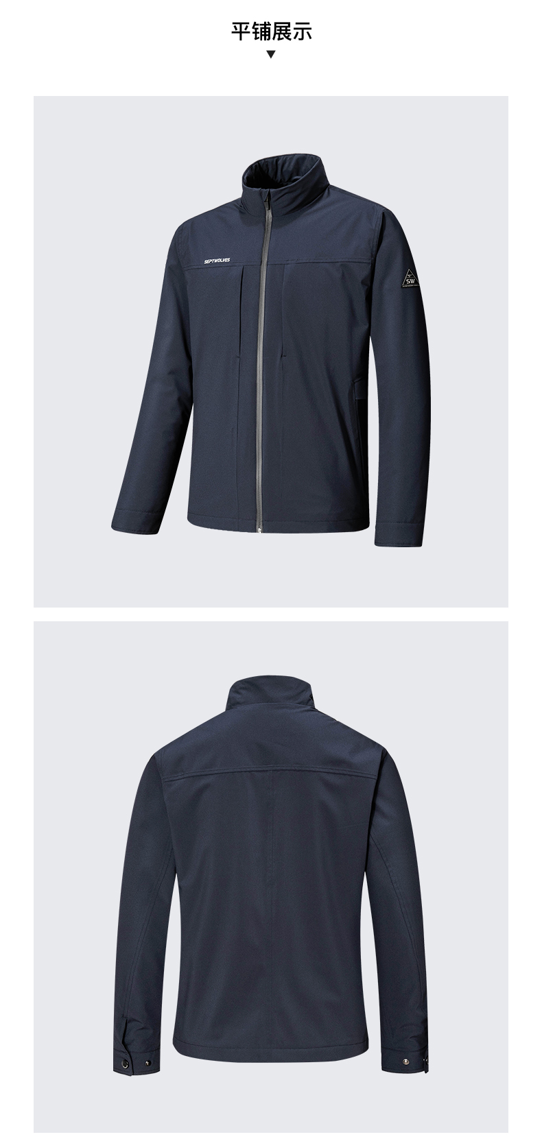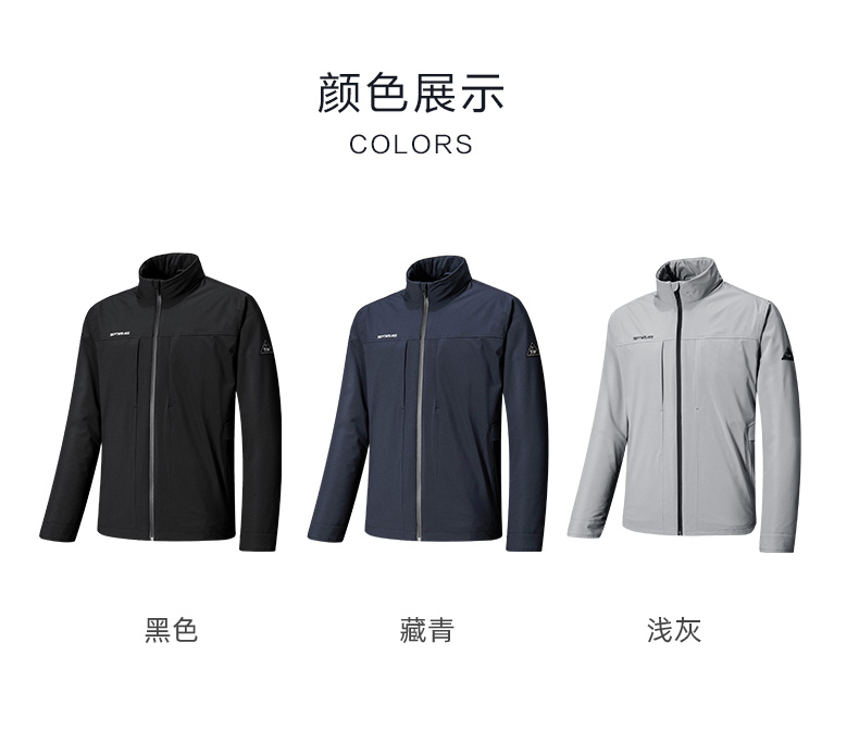 在款式上,合身版型,3D立体剪裁,立领,拉链顶端有护颚设计,避免刮伤脖颈。门襟使用YKK拉链,拉链有封膜覆盖,更好的防风防水。袖口是按扣开合,比弹力罗纹更显正式。