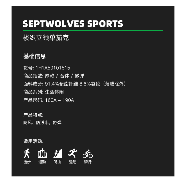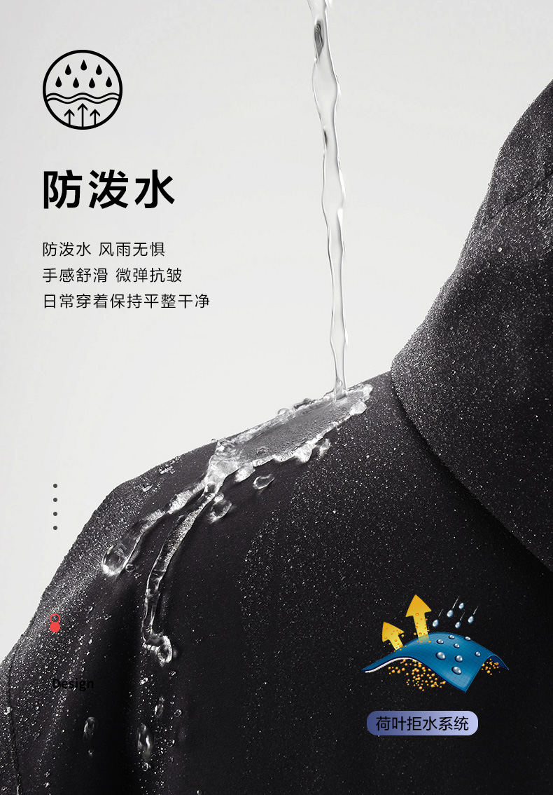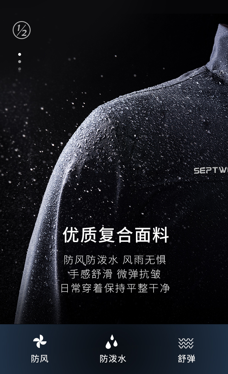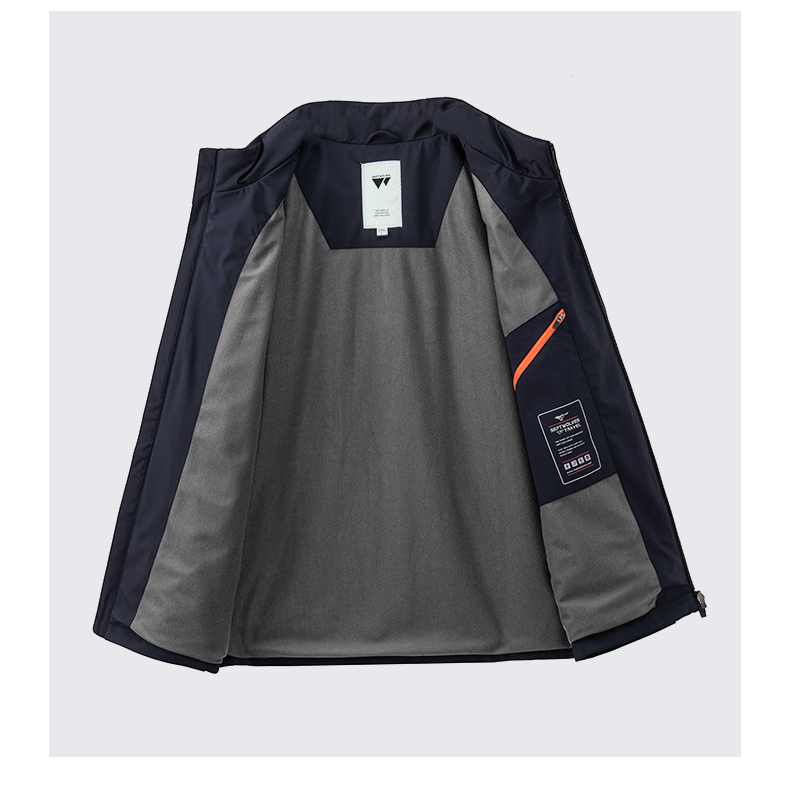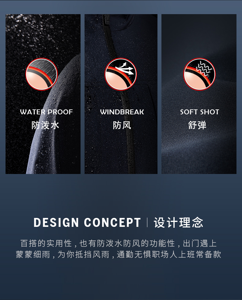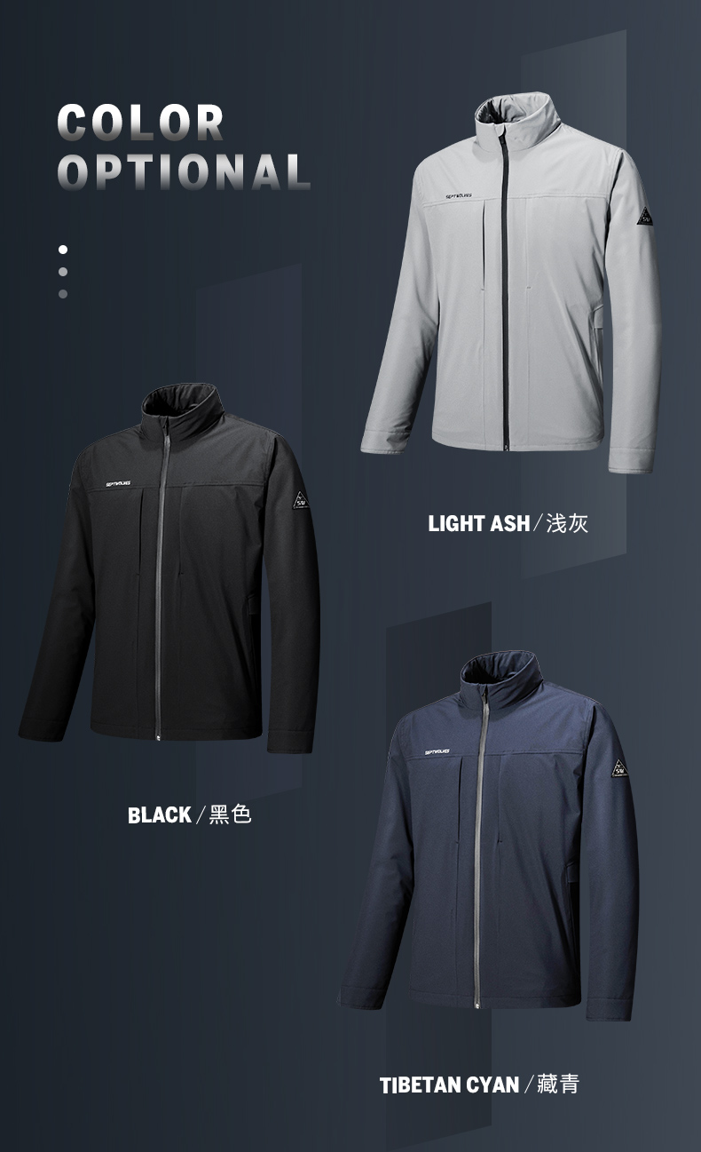 在款式上,合身版型,3D立体剪裁,立领,拉链顶端有护颚设计,避免刮伤脖颈。门襟使用YKK拉链,拉链有封膜覆盖,更好的防风防水。袖口是按扣开合,比弹力罗纹更显正式。