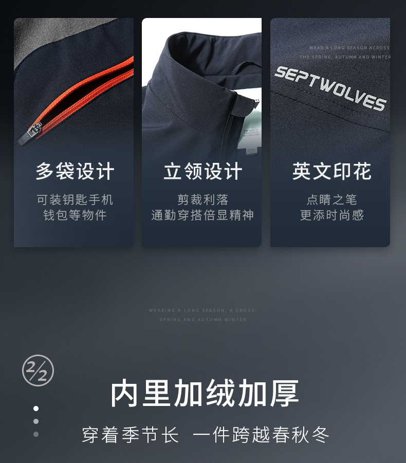 这款七匹狼男加绒加厚休闲夹克,是2020年的秋季新品,采用91.4%聚酯+8.6%氨纶的复合科技面料,高密度的面料结构,能防风防寒有效阻隔冷空气入侵,外层有防水薄膜层,无惧一般小雨,还微弹抗皱。内里是加绒加厚的织物,抗寒保暖,适合秋冬季穿。