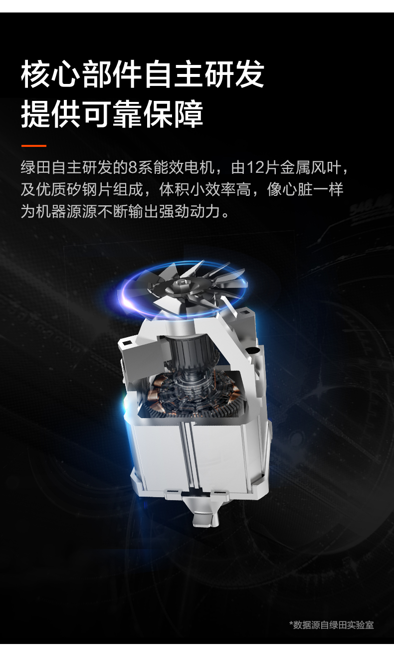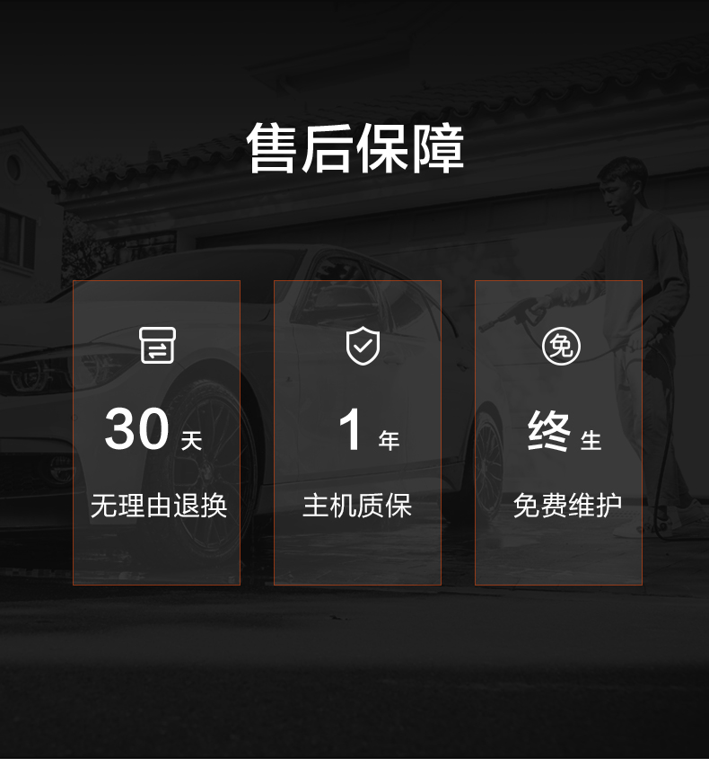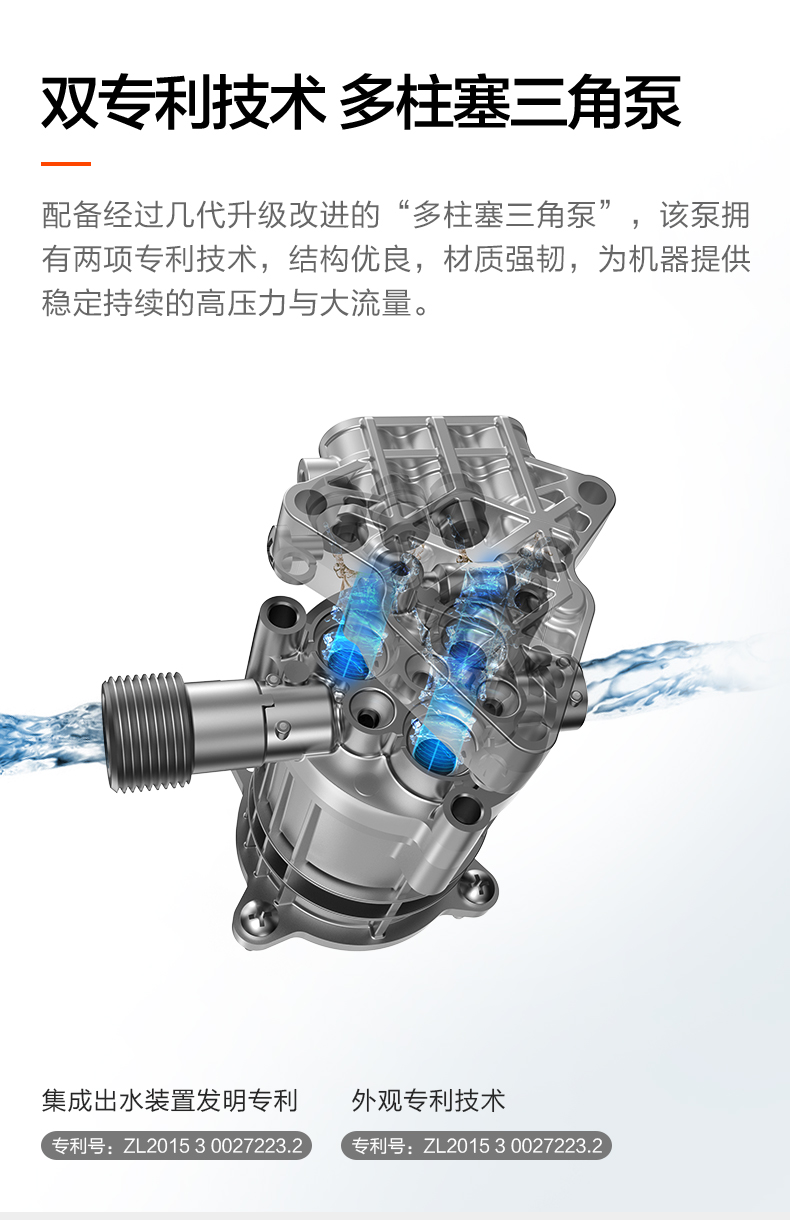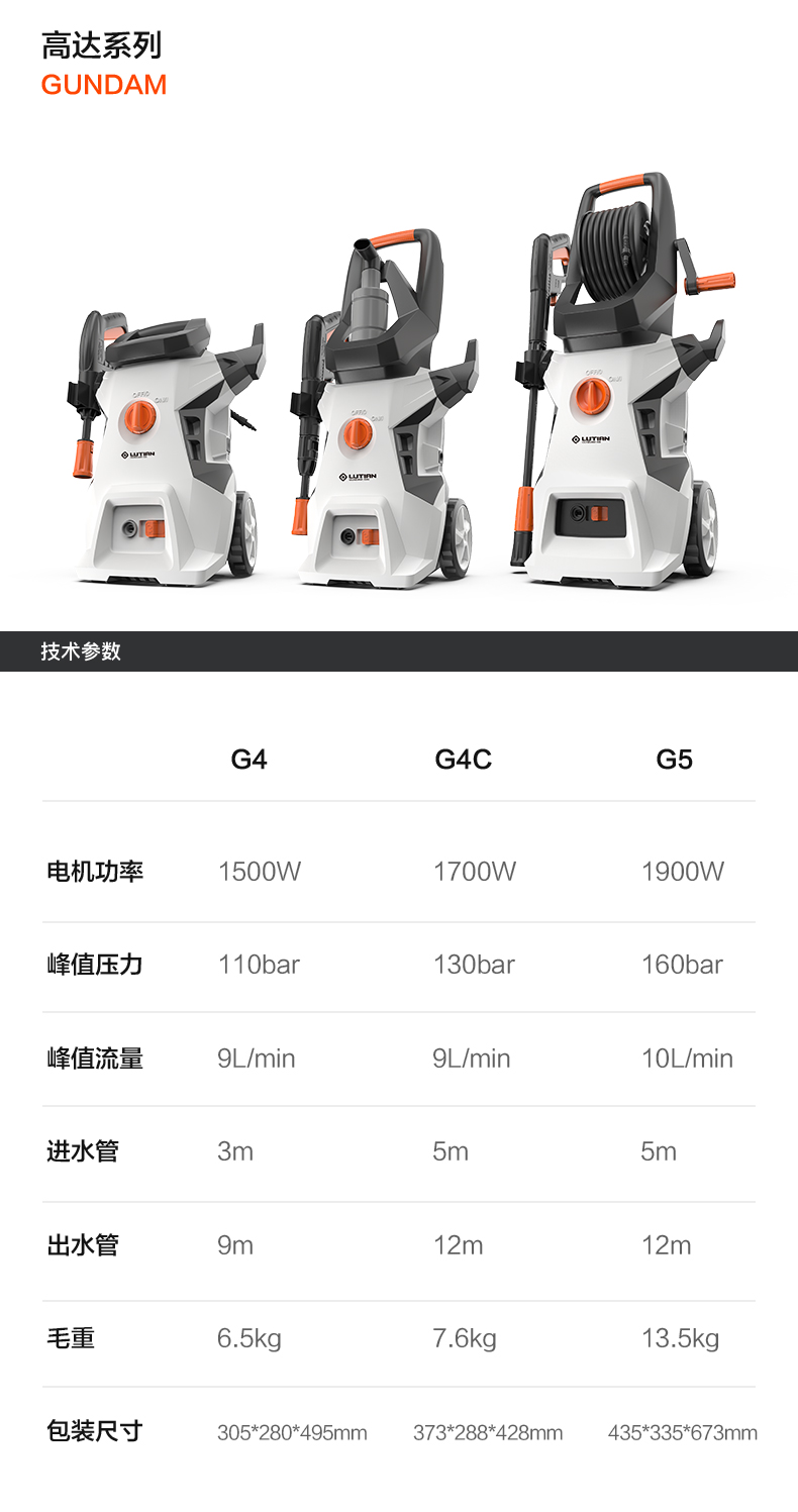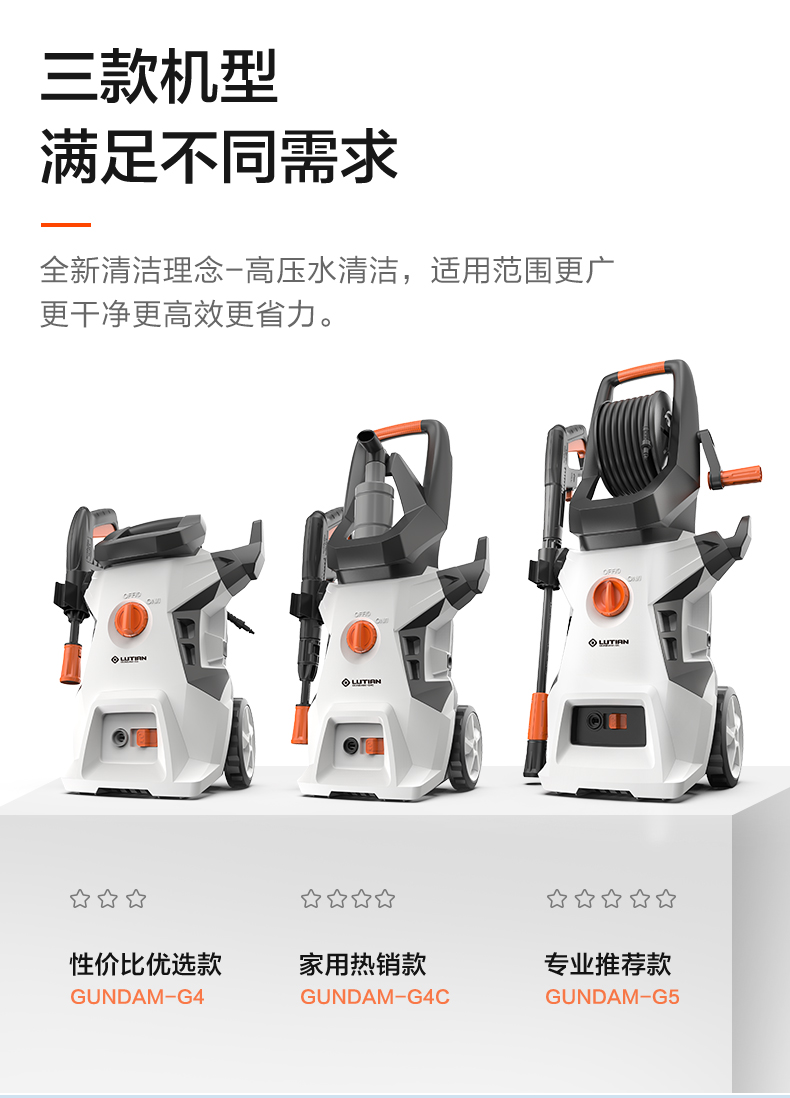 升级版8系能效电机,12片金属风叶,20000转/分钟,功率1400W,电机效率高达65%,能够迸发出100bar压力,可以连接水龙头,也可以自吸式水桶使用,一台机器具有清洗车辆、园艺灌溉、清洗户外及庭院等多种功能。
