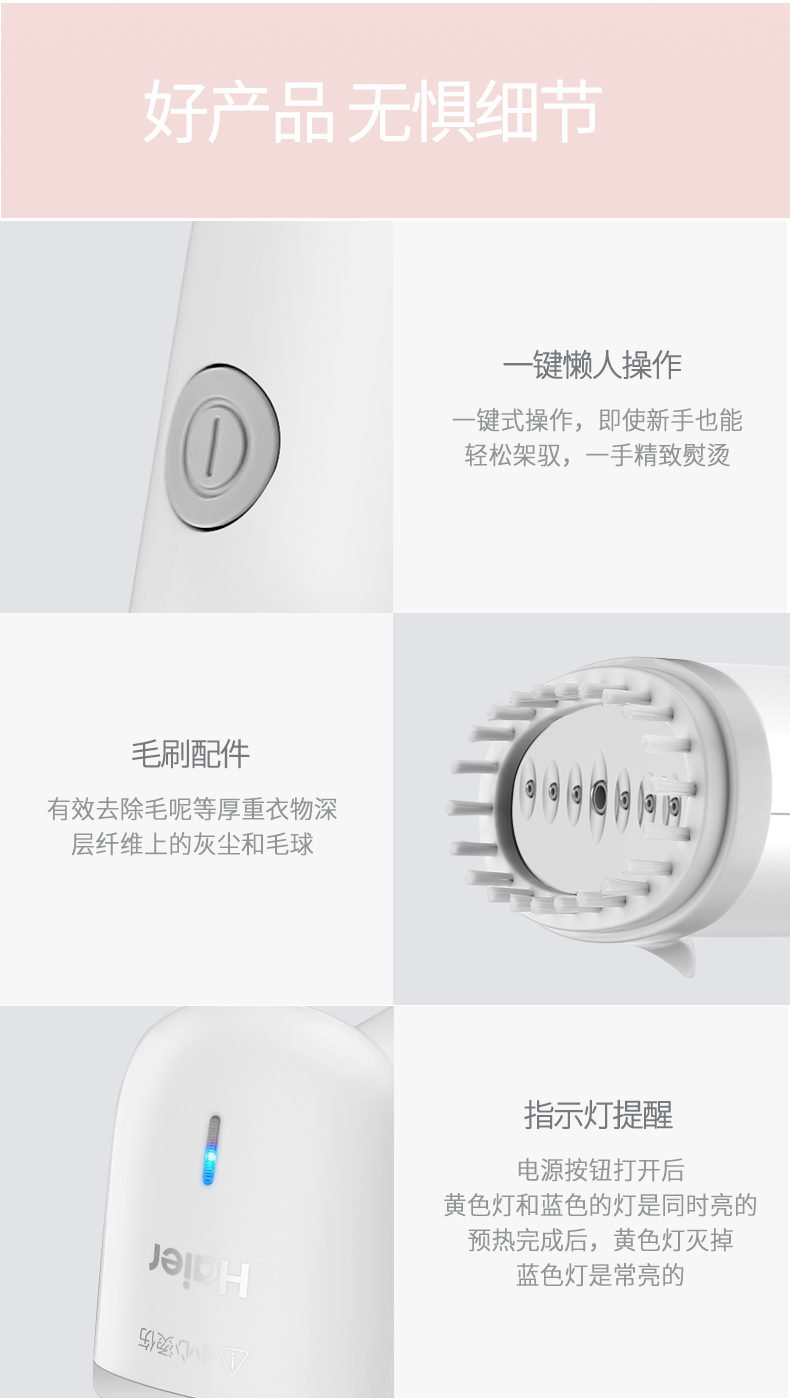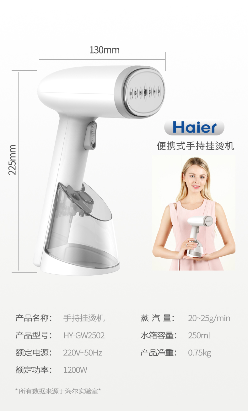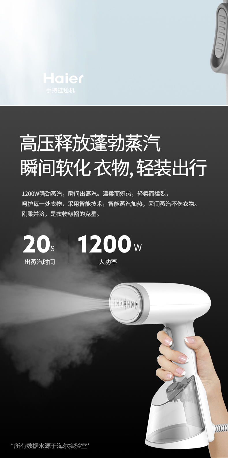天猫haier海尔诺希专卖店,11月1-3日双11抢先购¥99元 抢先价,-30元优惠券,=69元 到手价,第一款此价,海尔小巧便携 熨烫机,月光白色,1200w大功率,20s出蒸汽,可干湿两用,快速熨烫除皱,不伤衣物,230ml可视水箱,加满一次约可用7-8分钟,0.75kg轻量化设计,一手掌握操作方便。居家旅行常备。每满300-40元跨店满减