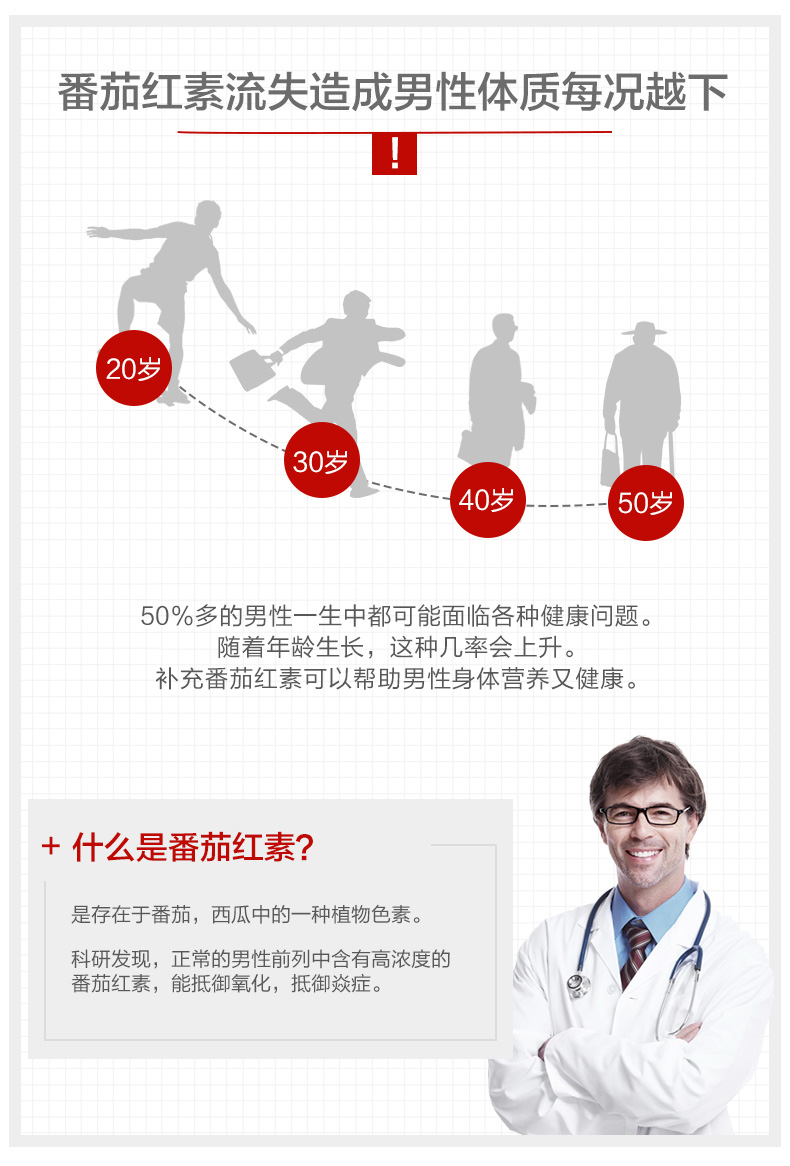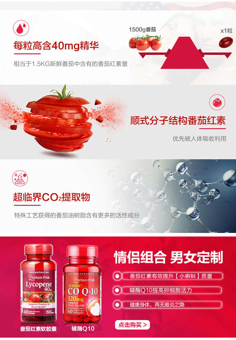 这款普丽普莱 番茄红素软胶囊 ,精选以色列番茄,经过超临界提取,每粒高含40mg精华,高浓度的番茄红素,能够清除男性前列腺内的自由基,有效提高小蝌蚪质量,清除炎症,降低前列腺问题风险。
