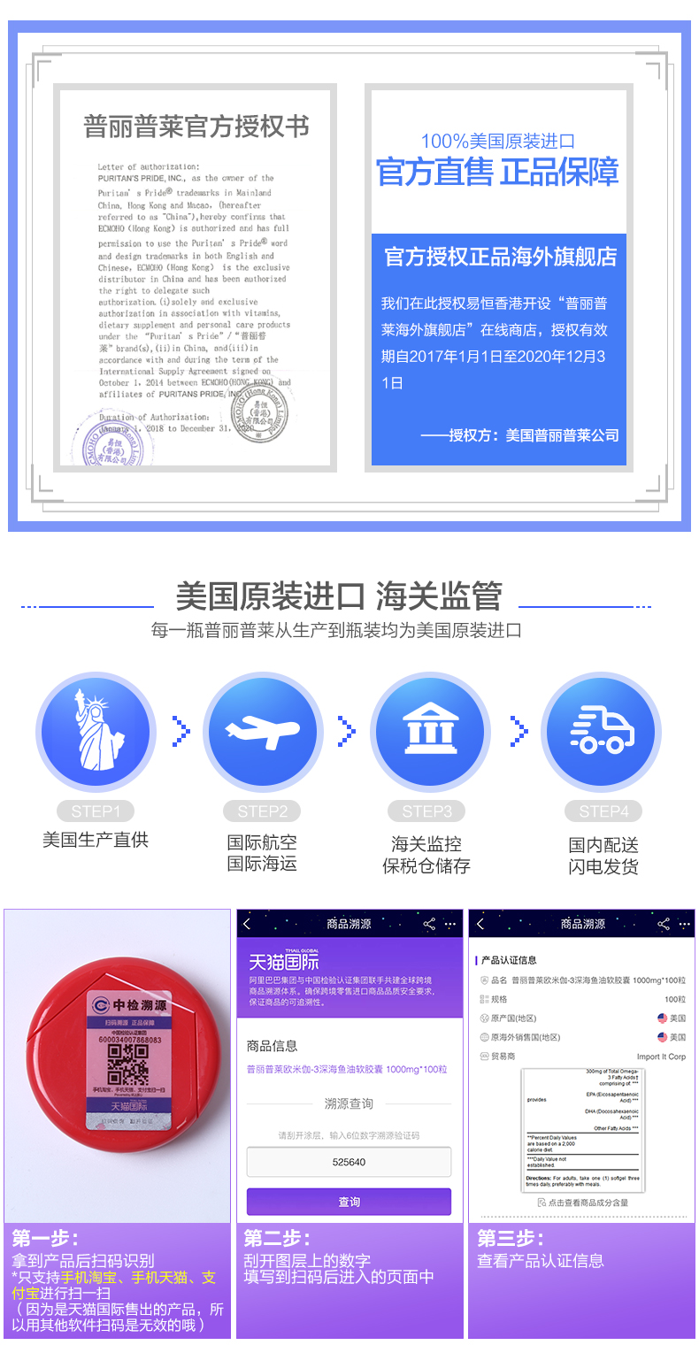 普丽普莱Puritan's Pride是美国规模最大、名气最响的保健品企业,公司生产的所有一千多种保健品全部都通过了美国FDA的认证。目前是NBTY 旗下的公司,NBTY公司前身为自然之宝,于1990年5月正式更名为NBTY。