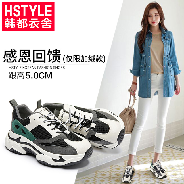 多款可选,有加绒款。现在超火的老爹鞋,加绒款更适合冬季。拼接鞋面设计,柔软舒适,加厚加高鞋底,耐磨防滑,隐形增高。韩都衣舍是天猫韩风快时尚销量第一品牌,款式设计绝对紧随时尚潮流,凸显腿长,休闲百搭~