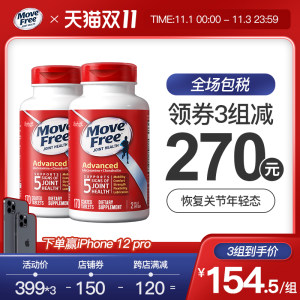 天猫MoveFree官方海外旗舰店,11月1-3日双11抢先购¥399元 抢先价,-40元优惠券,-40元 (每满300减40元)跨店满减,=319元 到手,规格是170粒*2瓶。每满300-40元跨店满减
