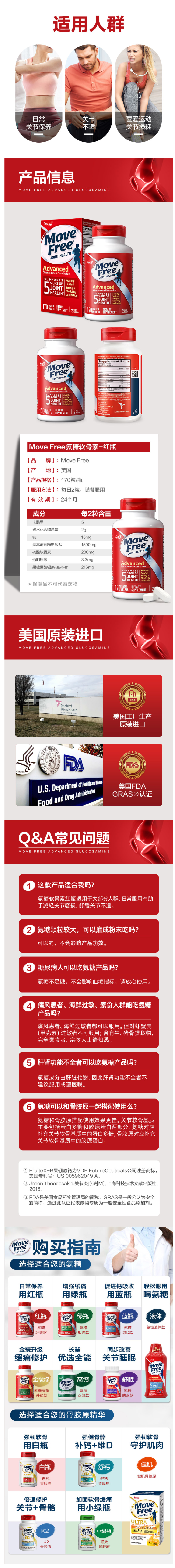 这款维骨力 氨基葡萄糖软骨素,是红盒,美国原产,作用是强化骨质骨骼,修补软骨组织,恢复关节活力,适用于关节轻度疼痛、运动损伤、劳动损伤的人,对于腰椎、手腕/关节、踝关节、膝关节、肘关节、颈椎均有效果;每日2粒,1次或多次随餐服用,规格是170粒/瓶。