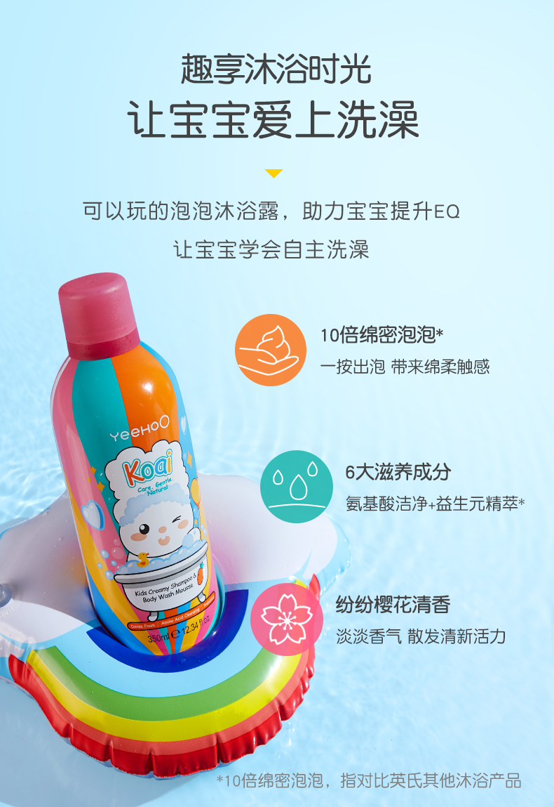 =89元 到手价,拍1发2,到手350ml*2件。英氏小奶泡儿童沐浴露洗发水二合一温和清洁,泡沫不刺眼,弱酸性配方,亲肤温和,宝宝不抗拒洗澡。